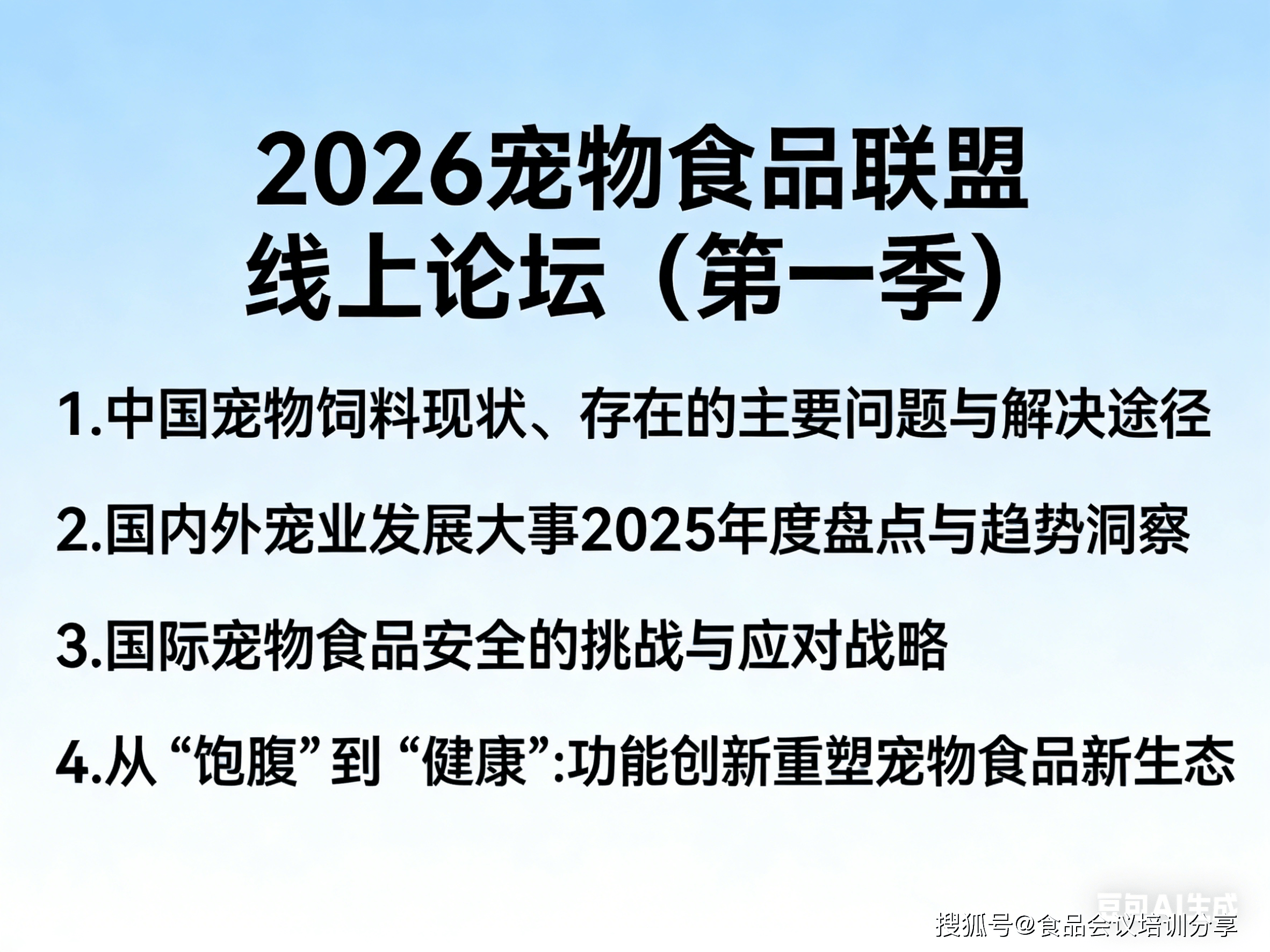 食物伙伴网立脚食物行业深耕经验,整合全公司焦点资本,此中,宠物食物板块将于2月28日(正月十二)上午,正在食学宝线长进修平台免费曲播。邀您一路洞悉市场脉络,阐发行业问题,从中找出成长路子取立异谜底,为宠业人正在新一年的工做征程中赋能帮力。例如质量平安风险频发;尺度监管难消费者信赖度低;产物内卷加剧,立异冲破难等等。除了需要打破内卷现状,更多需要回归到价值本身—产物价值以及办事价值。感乐趣的记得留言哦。食物会议培训核心,分享食物行业会议培训动态,充实满脚您的进修需求。前往搜狐。