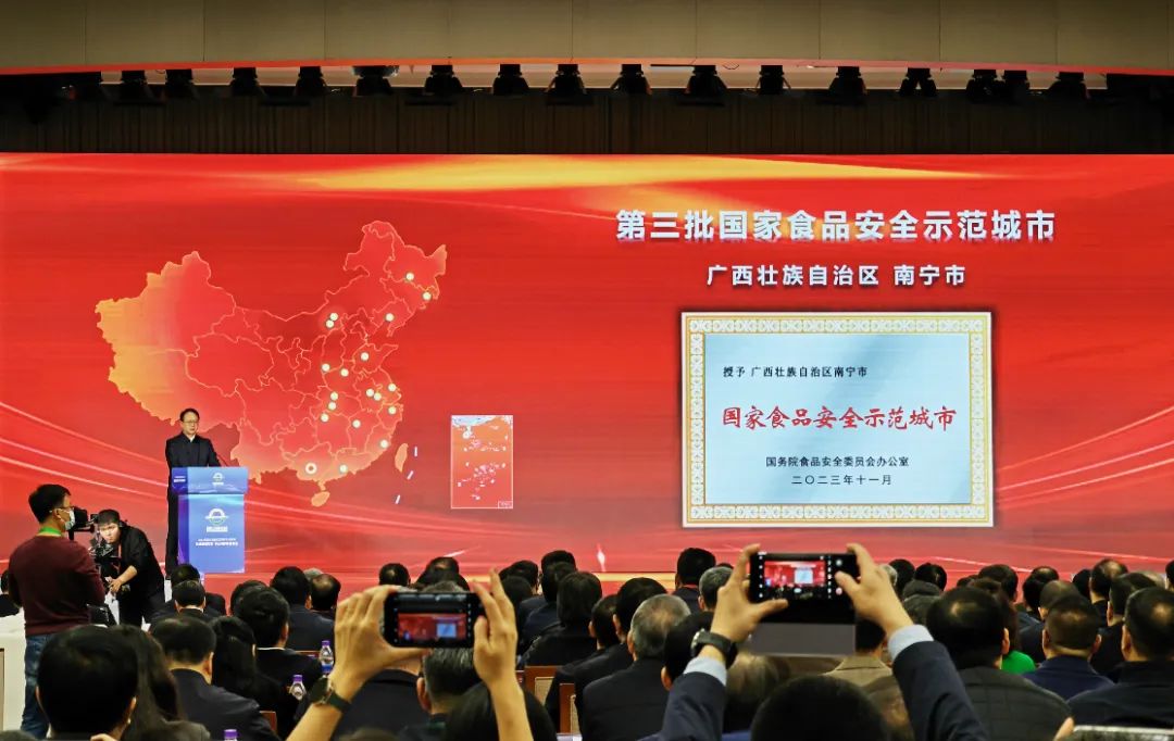 2023年11月28日,广西南宁市、钦州市被国务院食物平安委员会办公室正式授牌定名为“国度食物平安示范城市”荣誉称号,成为全国第三批、广西初次获此殊荣的城市。