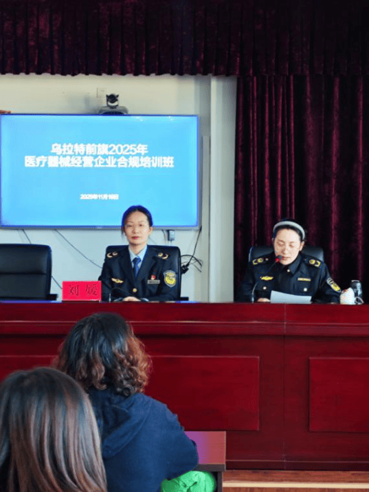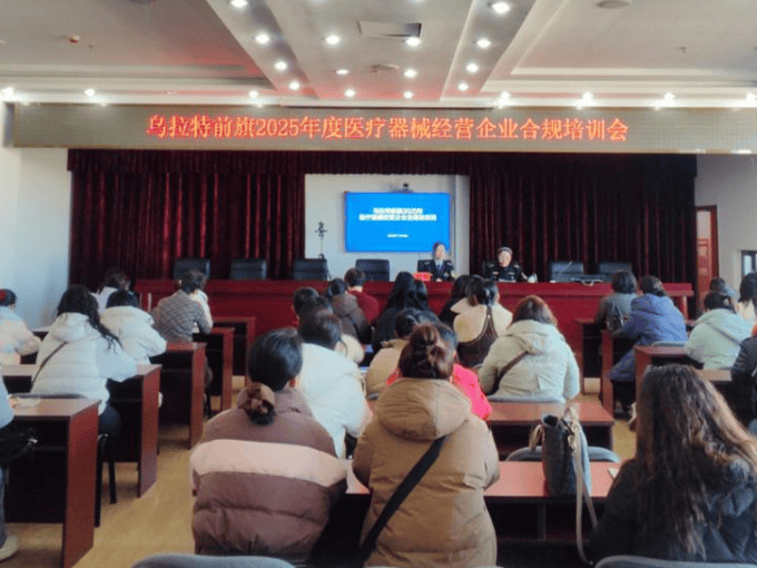 组织召开2025年度医疗器械运营企业合规培训会,巴彦淖尔市市场监视办理局医疗器械科莅临指点,旗内98家医疗器械运营企业相关人员参会。